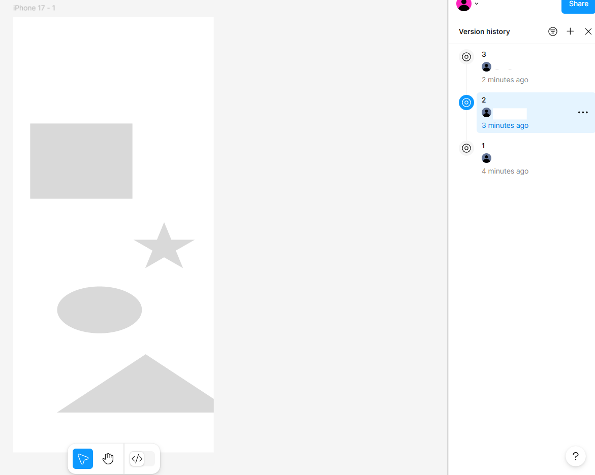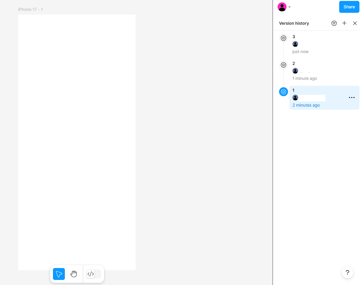 피그마는 파일이 계속 업데이트 되면서 자동 저장되는 형식이기 때문에 남겨둬야 되는 버전이 있을 때 활용하면 좋을 듯 하다.