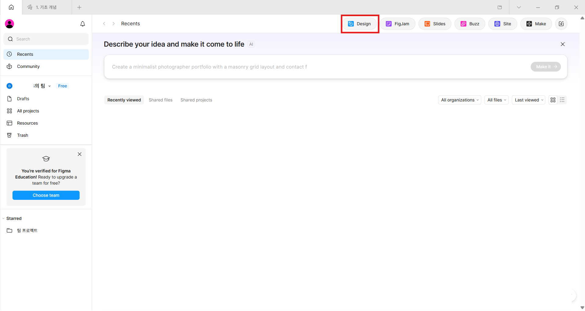 초기화면에서 Design 버튼을 누르면 디자인 제작을 할 수 있는 작업공간이 나온다.